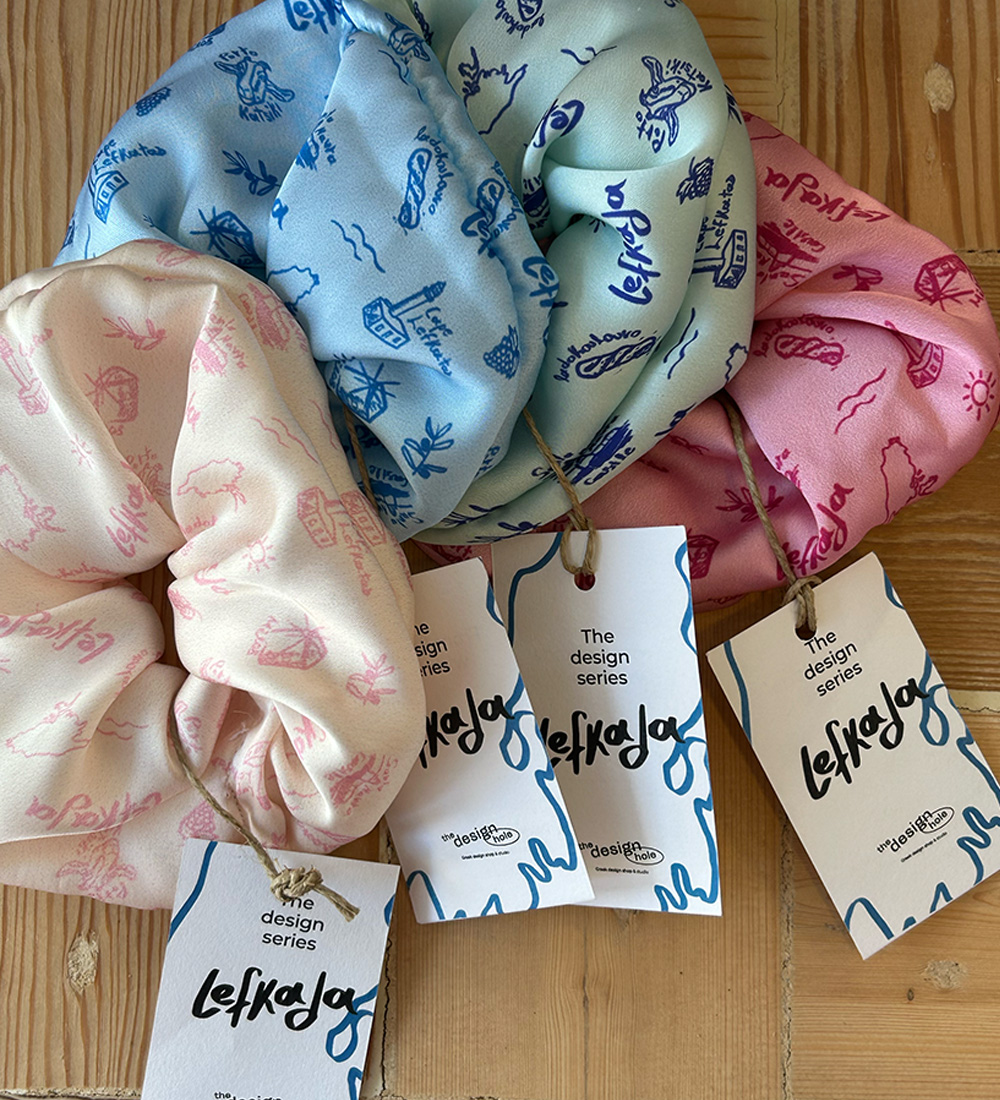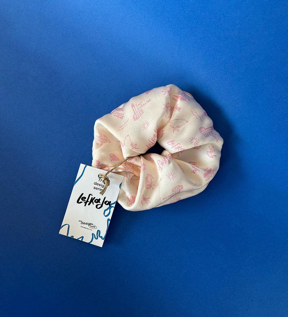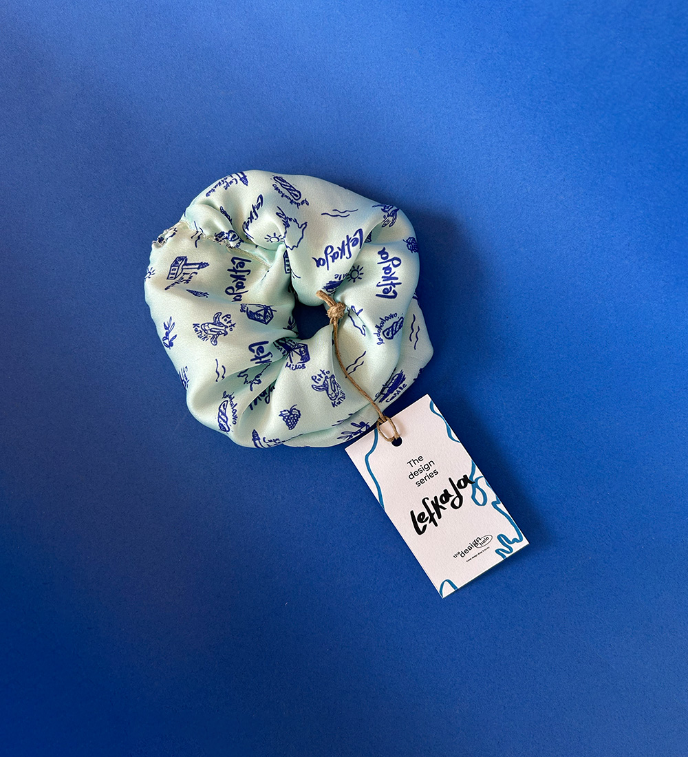 Scrunchies με pattern απο βασικά στοιχεία της Λευκάδας.
