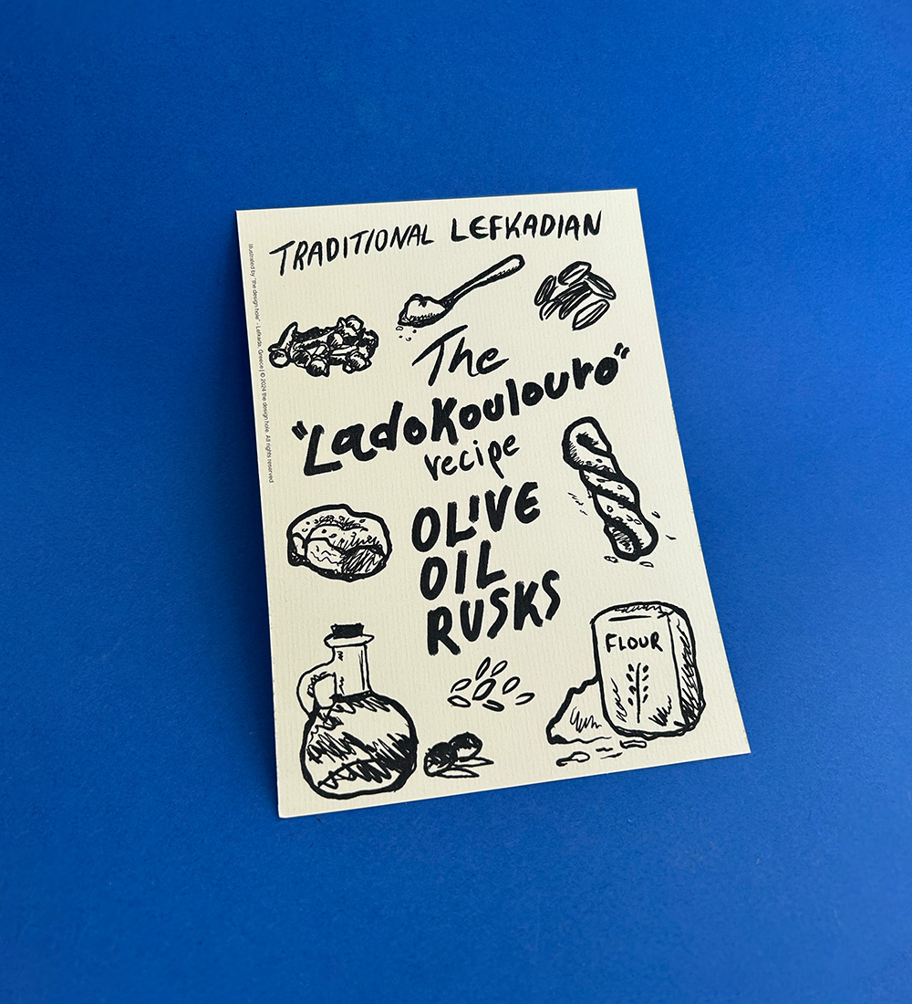 Κάρτες με παραδοσιακές ελληνικές και λευκαδίτικες συνταγές σε ειδικό χαρτί.